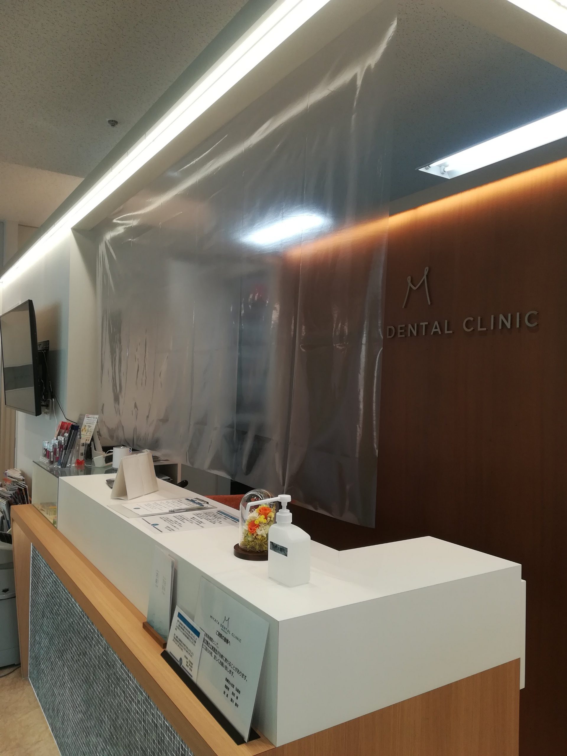 新型コロナウイルスへの感染対策として、受付にビニールシートを設置しました。