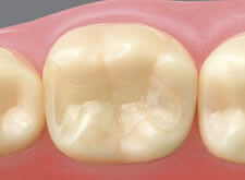 主に奥歯の詰め物として使用される金色の金属の詰め物です。主成分に貴金属の金を使用している金合金です。